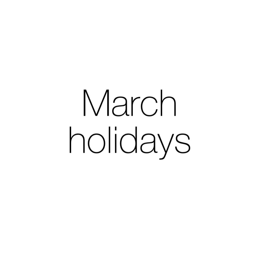 3月の定休日は2日(月)、9日(月)、16日(月)、17日(火)、23日(月)、30日(月)です。